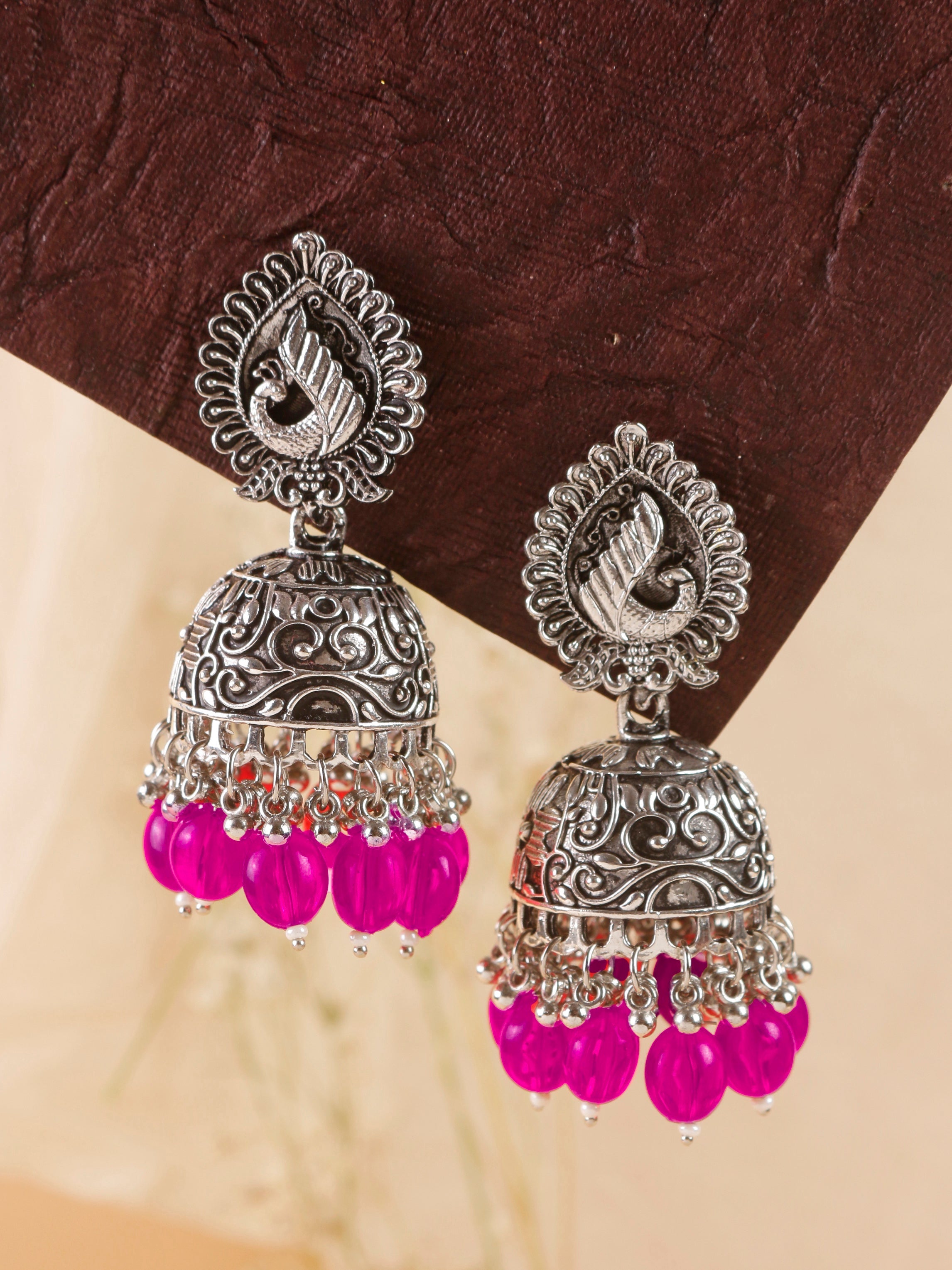 Swisni Alloy Silver Jhumki Earrings with Pink Beads