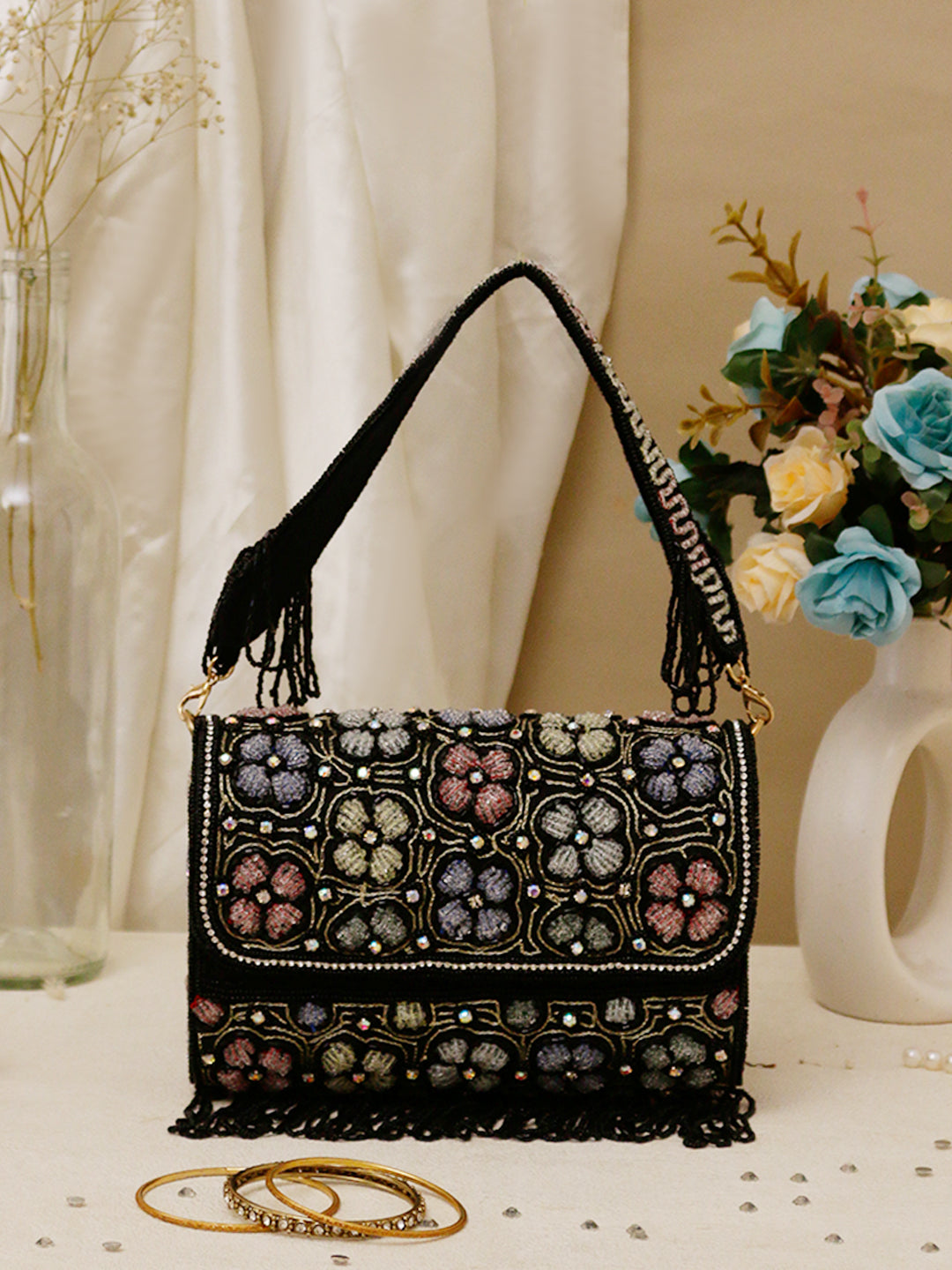 Swisni black multi flap clutch bag