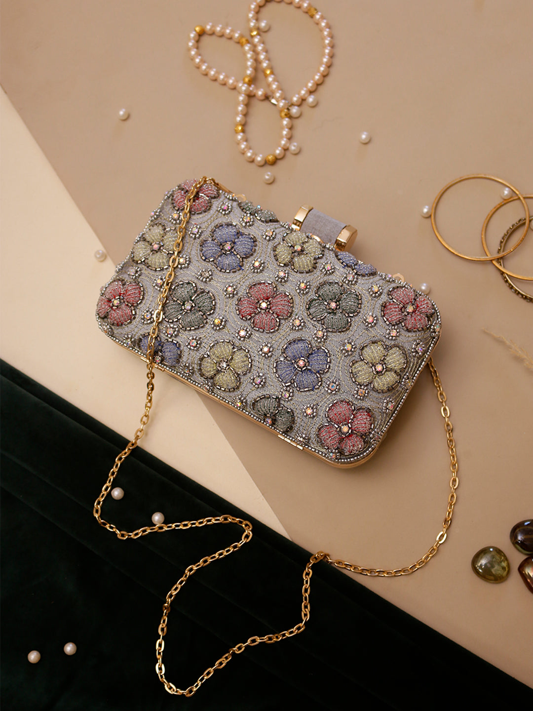 Swisni grey embroidered clutch bag