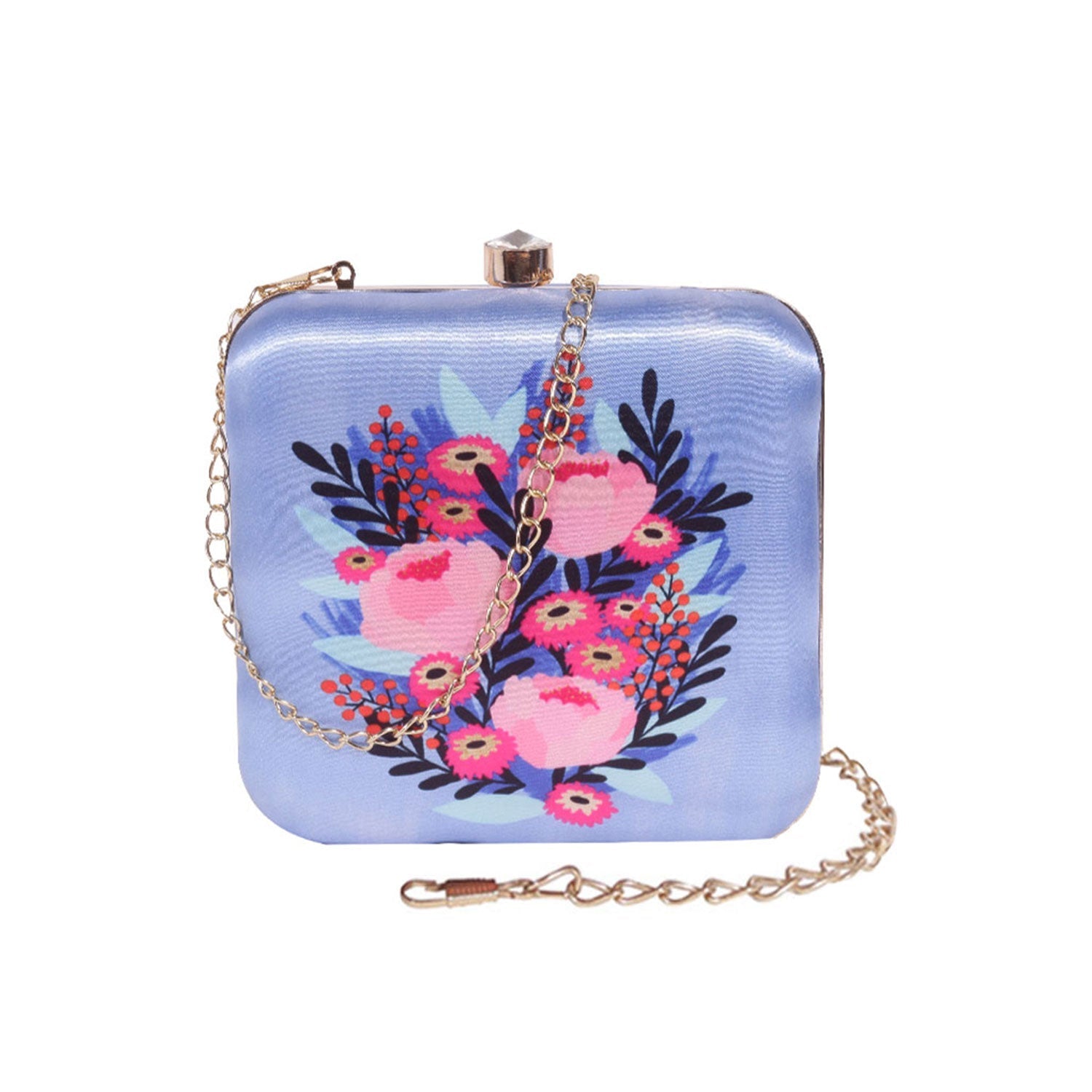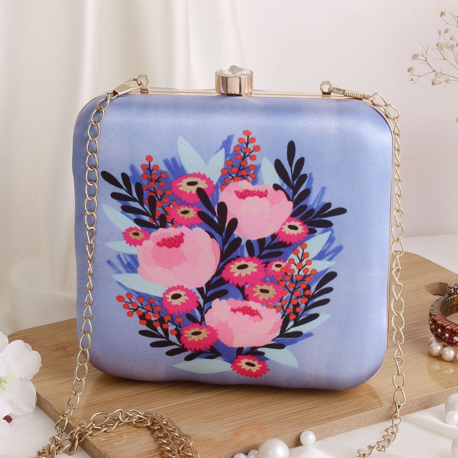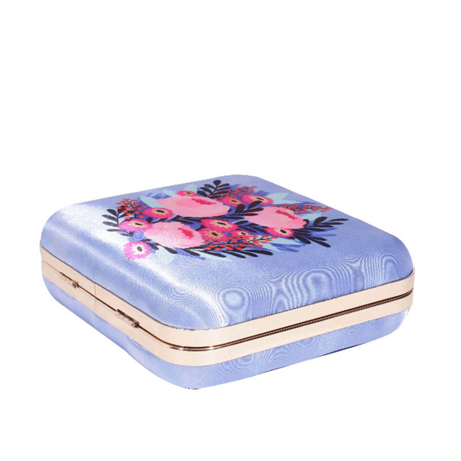 Flower printed sqaure satin clutch