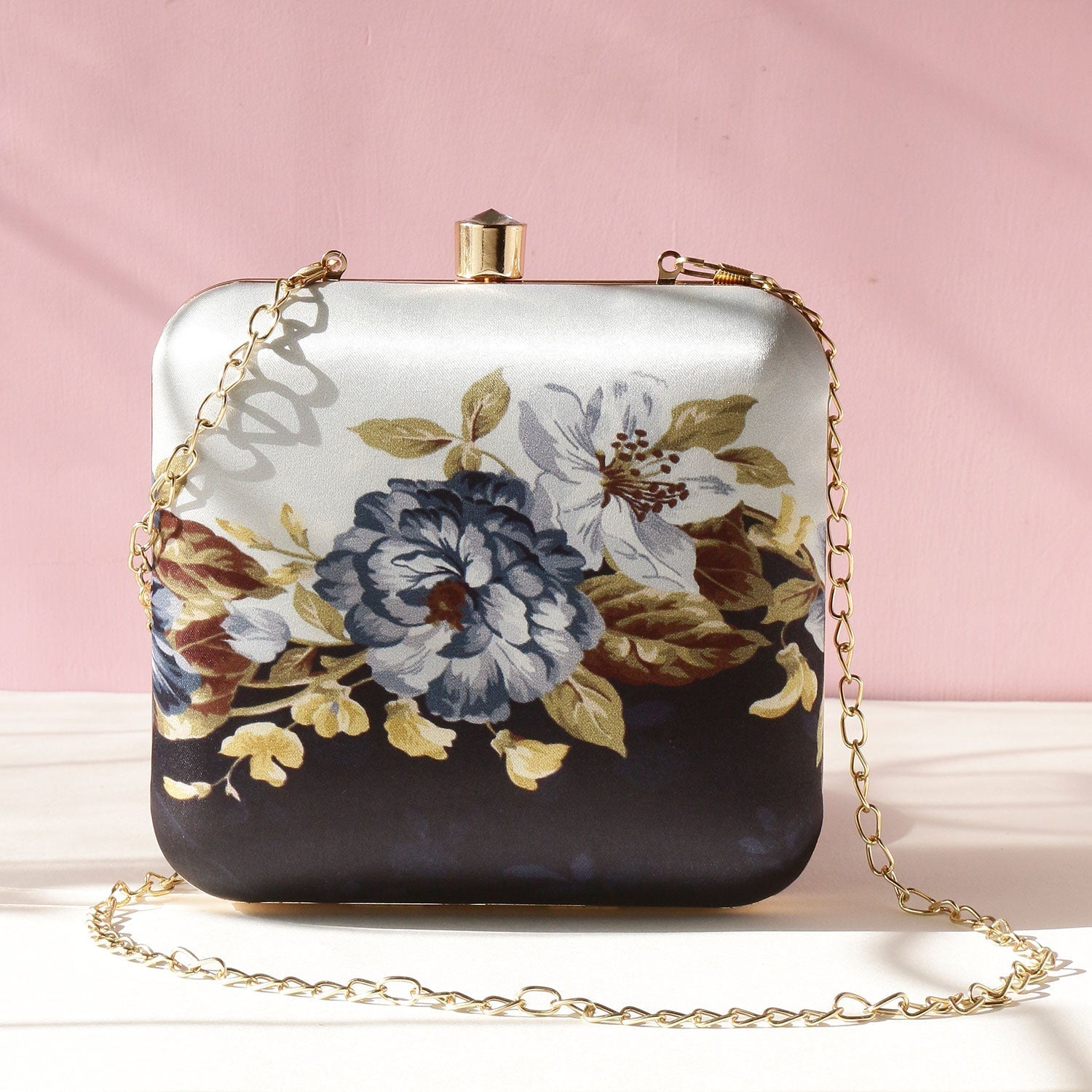 Printed floral clutch bag