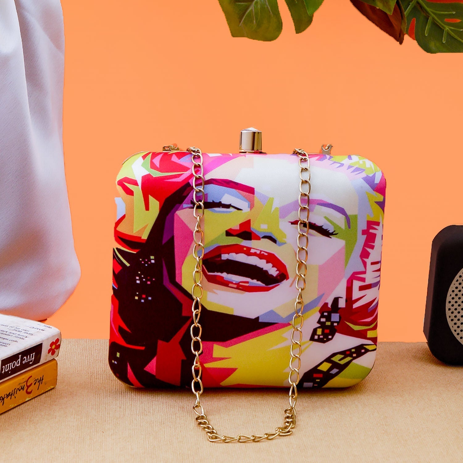 Swisni laughing girl digital printed clutch