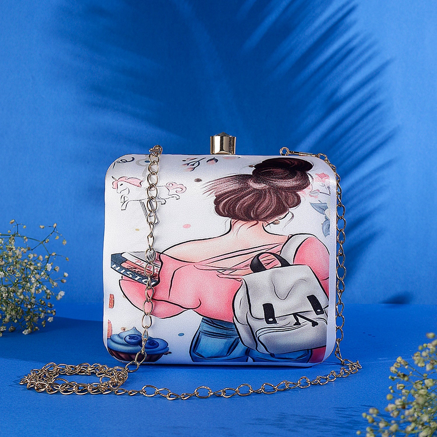 Girl With Take Book Nd Bag Print Design Box Clutch Bag For Girls