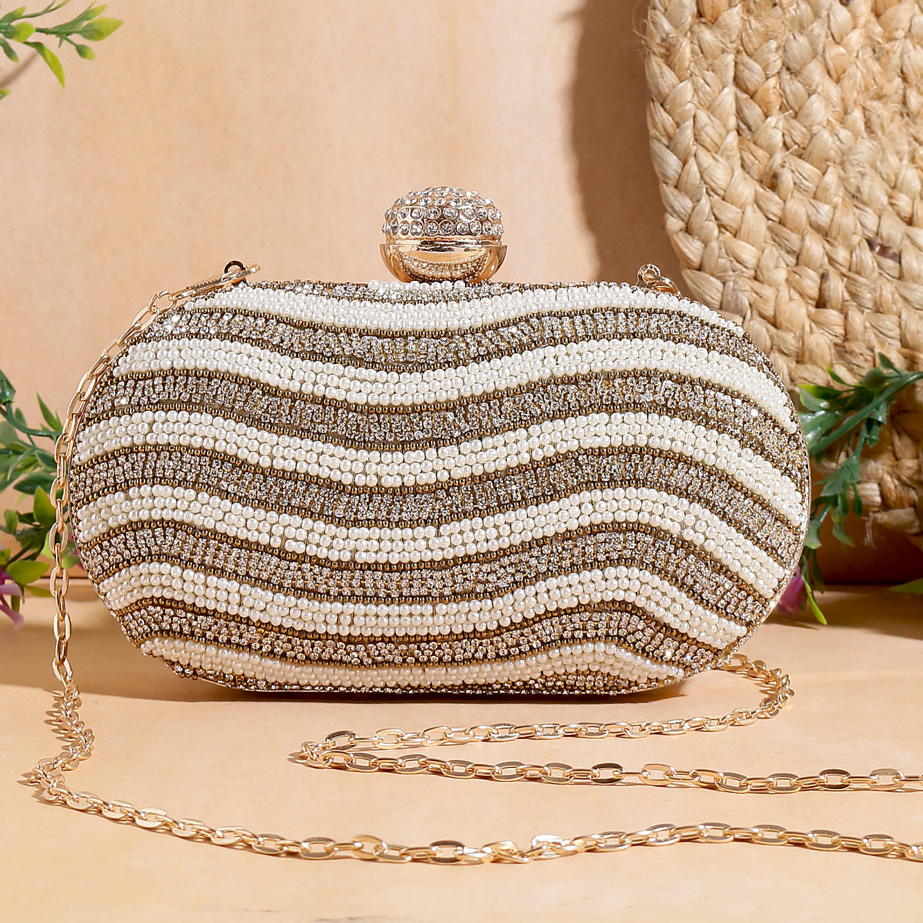 Swisni embroidered oval clutch
