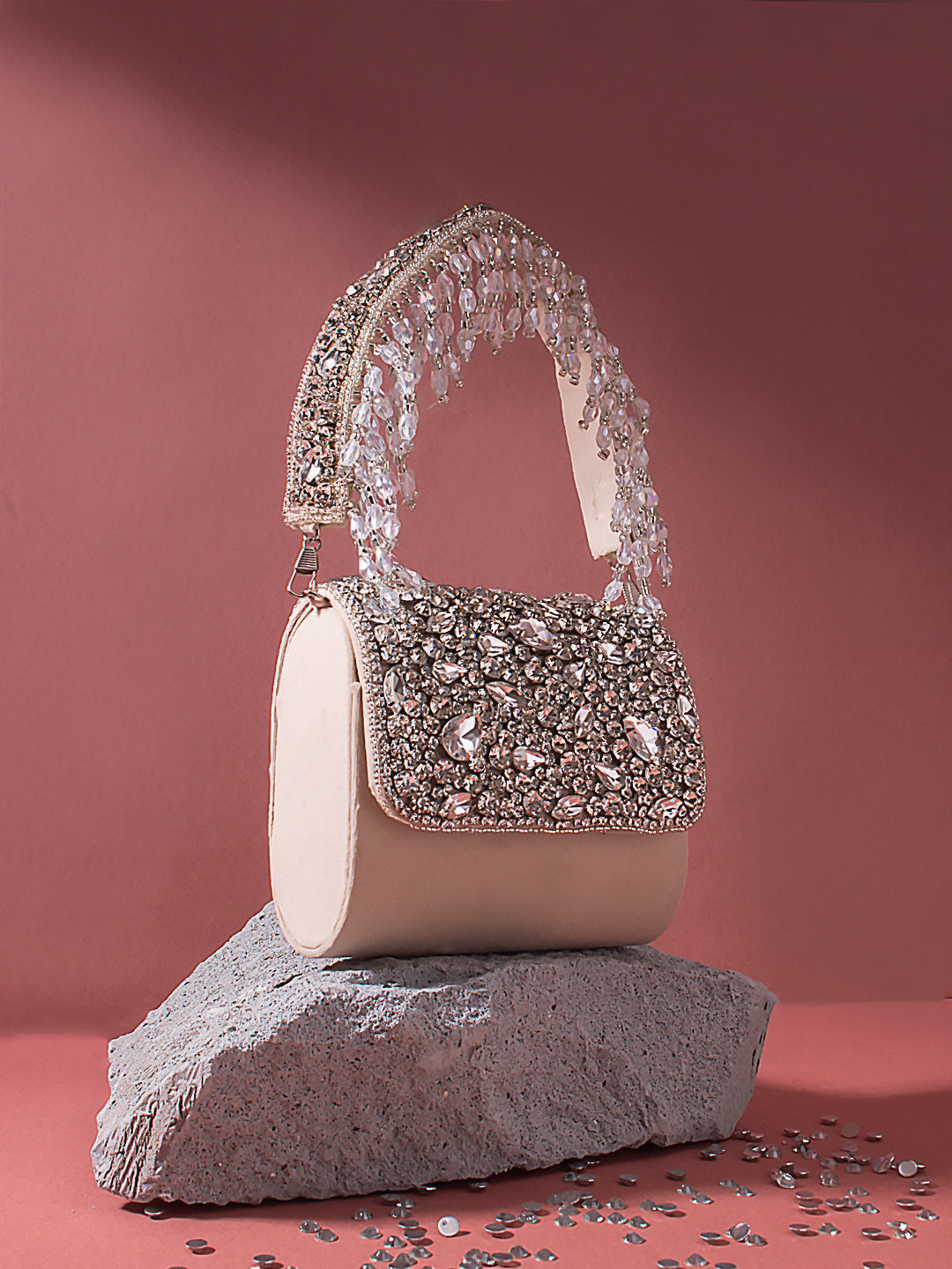 Swisni mini peach crystal clutch bag
